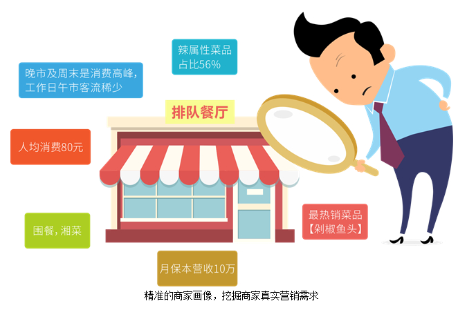 为什么要进行商家画像?因为只有从商家的属性、菜系、客单价、成本、淡旺时段、热销菜品、上座率、订单数等营业销售数据分析中,我们才能最真实最直接地了解到商家的经营情况,才能发现商家经营弱点,挖掘出商家最真实的营销需求。