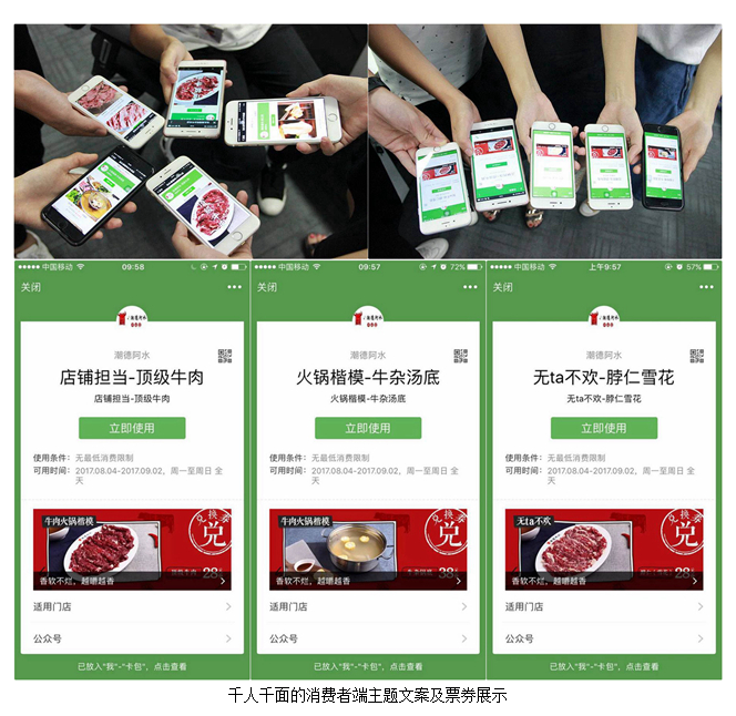 这种千人千面的精准“美食+优惠”体现在:营销方案专属(包括图文的专属)、美食优惠的专属、消费者端展示的专属。说得更通俗一点,每一位会员在营销中都是独一无二的存在。